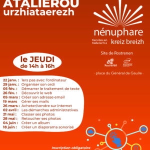 12 ateliers gratuits pour se familiariser avec les outils informatiques. Inscriptions auprès de Mickaël Le Moullec, Conseiller numérique, sur place ou au 06 09 21 28 29