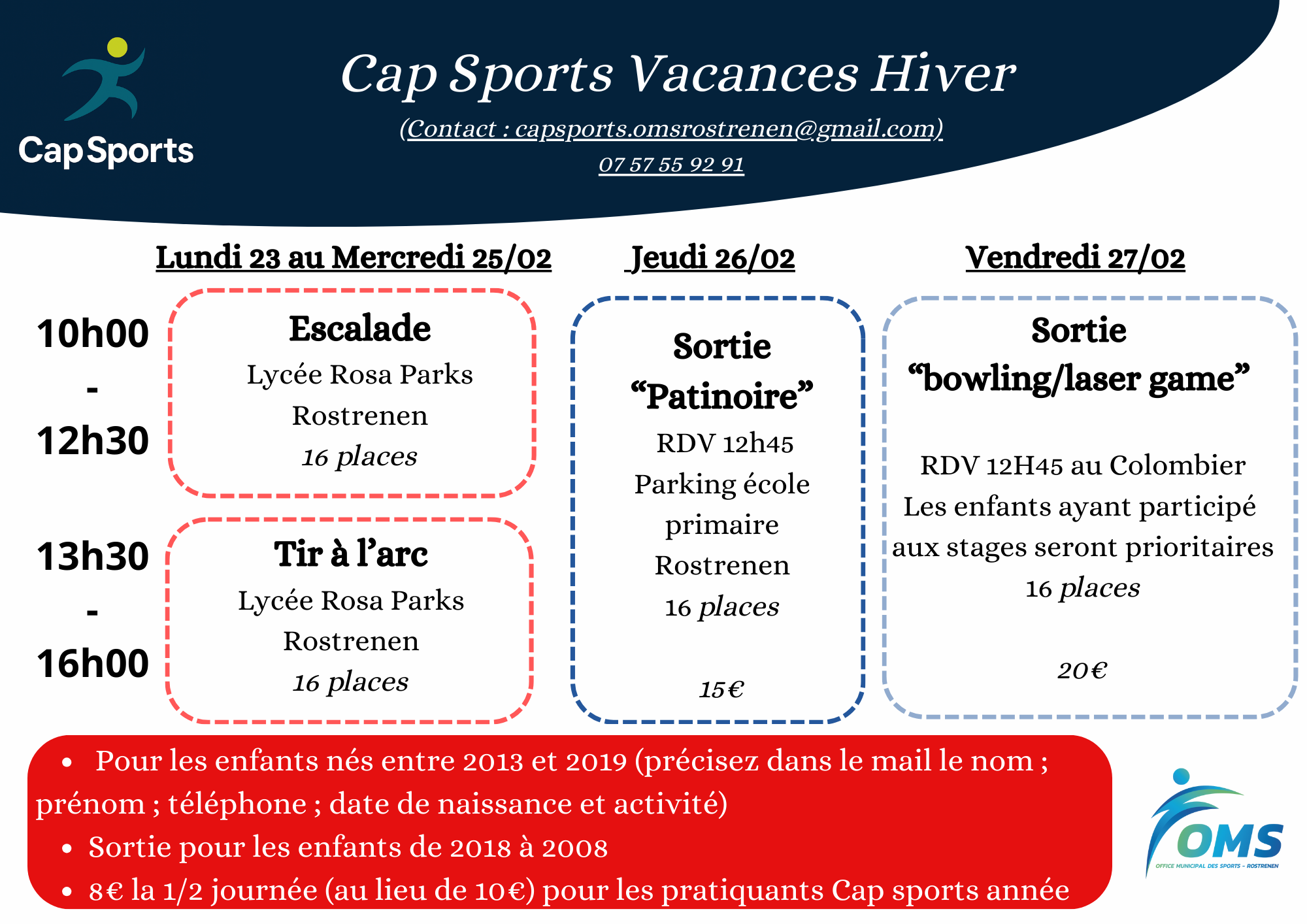 Inscriptions par mail : capsports.omsrostrenen@gmail.com