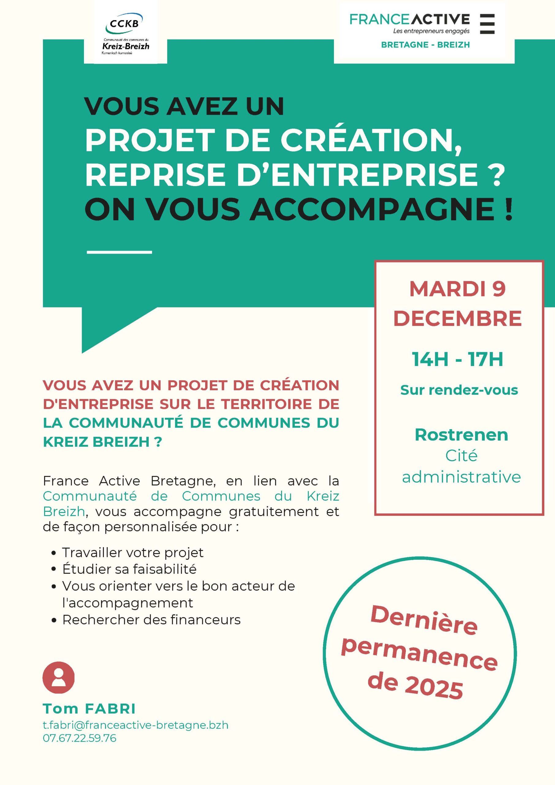 France Active Bretagne et la Communauté de communes du Kreiz-Breizh proposent un accompagnement personnalisé pour la création ou la reprise d’entreprise.