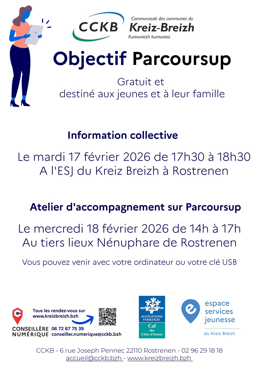 Les services Jeunesse et Numérique de la CCKB proposent un atelier ainsi qu’un temps de travail, destinés à accompagner les jeunes dans une meilleure prise en main de la plateforme Parcoursup.